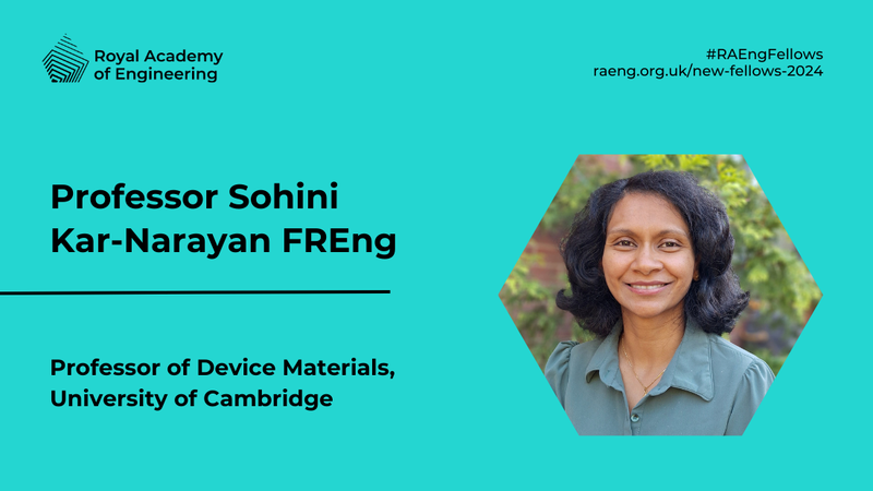 We are delighted, that Prof Sohini Kar-Narayan has been elected as a Fellow of the Royal Academy of Engineering. She joins 70 other leading figures in the field of engineering and technology this year. You can find out more information about Prof Kar-Narayan's research and the other elected fellows here: